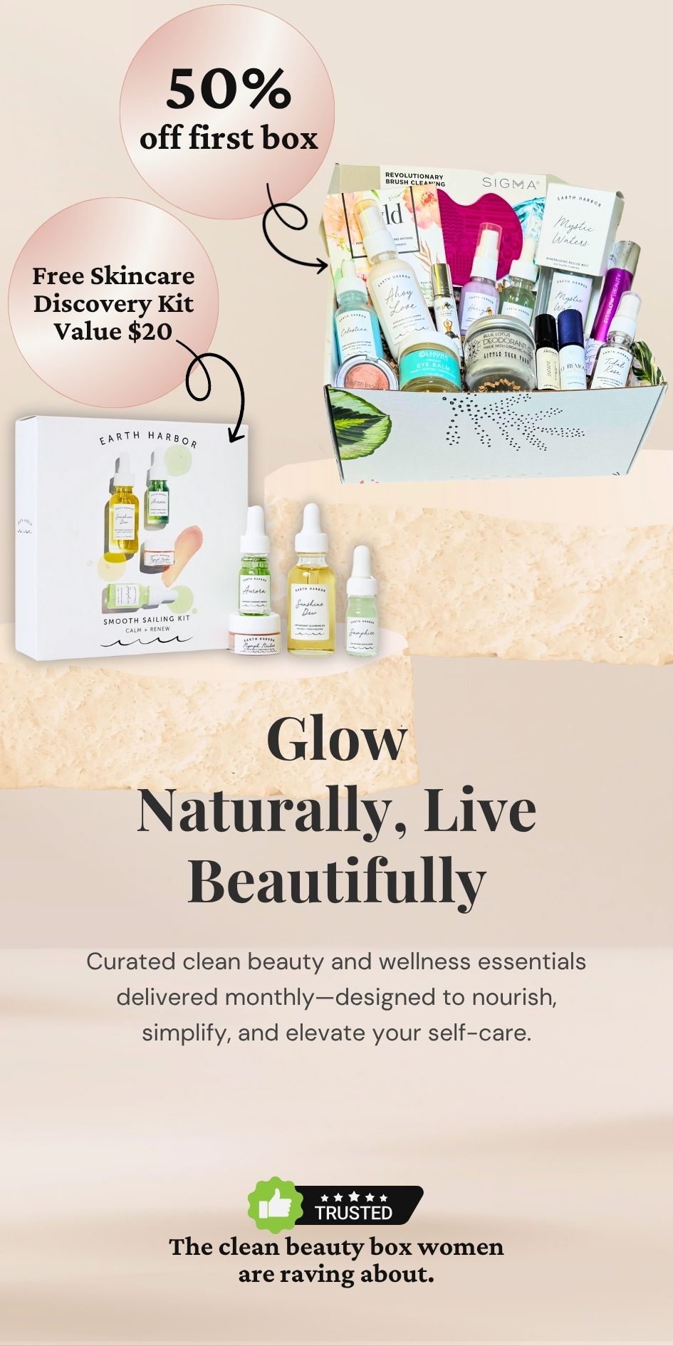 Each month, you’ll unbox 4+ new clean beauty and wellness discoveries, thoughtfully curated, non-toxic, and plant-based. From hydrating serums and soothing balms to organic makeup and spa-worthy tools, every box brings fresh finds to help you reset, restore, and glow through every season.