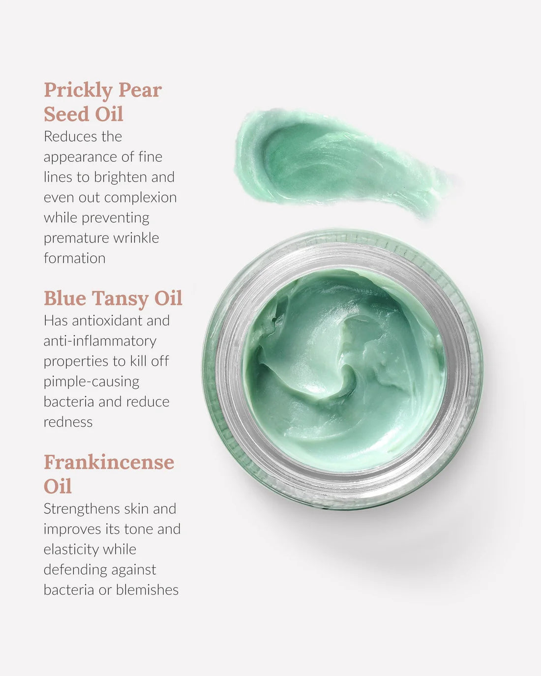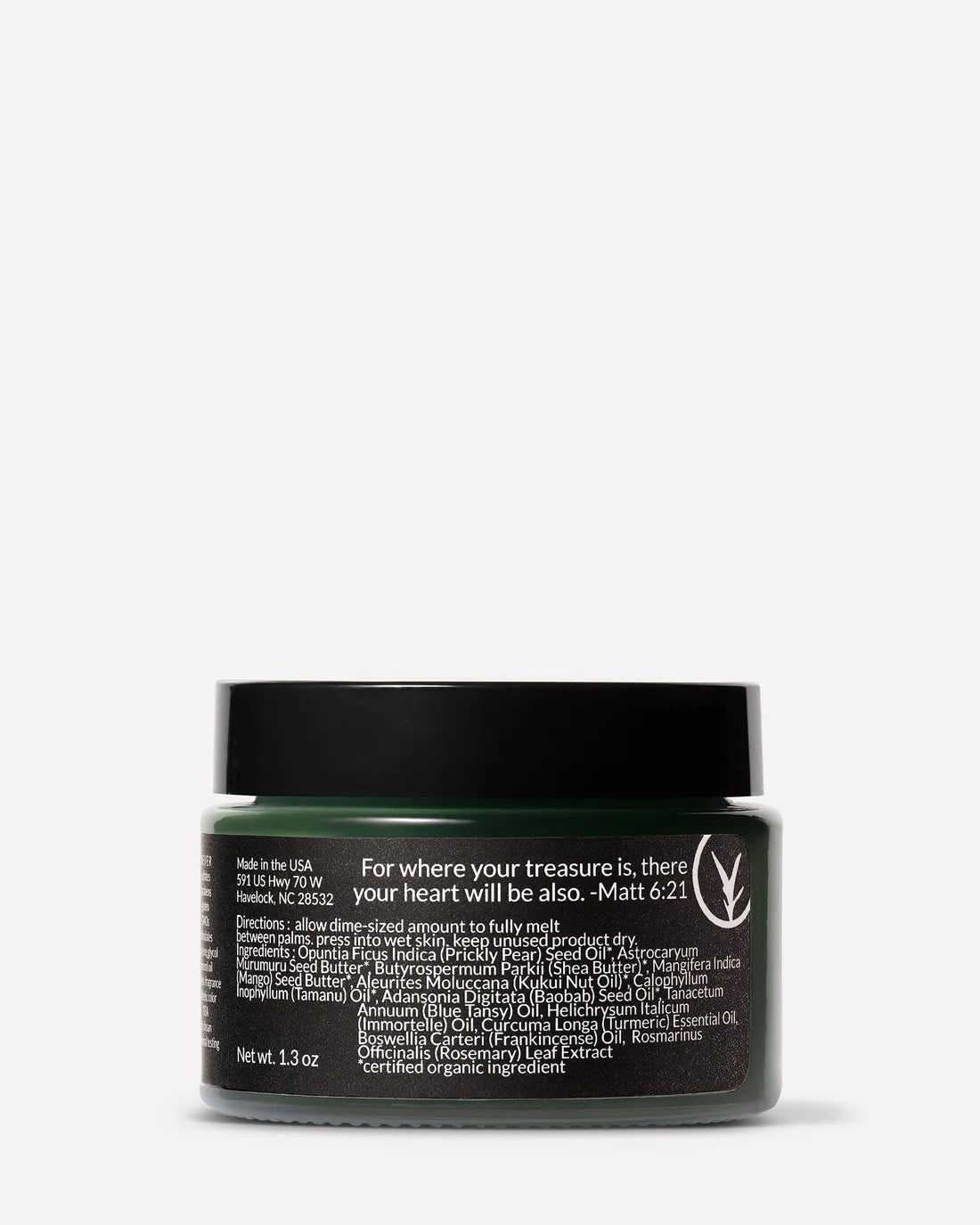Ingredients: Prickly Pear Seed Oil, Murumuru, Organic Raw Fair Trade Shea Butter, Mango Butter, Kukui Nut Oil, Organic Cold-Pressed Tamanu Oil, Baobab Oil, Blue Tansy Essential Oil, Helichrysum Essential Oil, Turmeric Essential Oil, Frankincense Essential Oil, and Rosemary Antioxidant Extract.