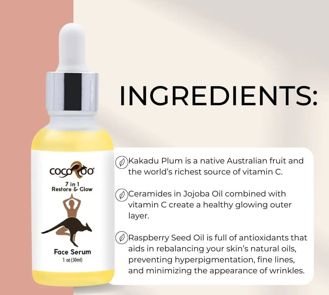 CocoRoo’s concentrated 7 in 1 Face Serum is a super-charged blend designed to rebalance your skin’s micro biome and leave your skin looking brighter, tighter, and more supple.