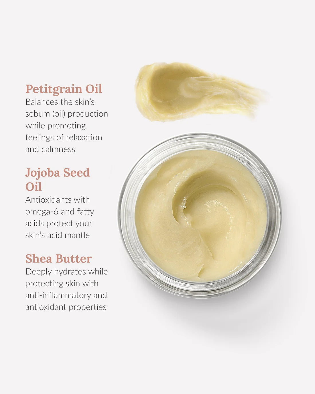 Ingredients: Organic Raw Fair Trade Shea Butter, Sweet Almond Oil, Jojoba Oil, and Petitgrain Essential Oil.